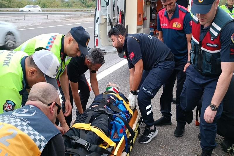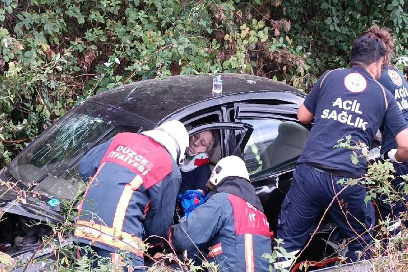 Kaza, TEM otoyolu Düzce mevkiinde meydana geldi. İstanbul’dan Ankara istikamete gitmekte olan de Hulki D.(49) idaresindeki 34 LZ 035 plakalı otomobil sürücüsünün direksiyonu hakimiyetini kaybetmesi sonucu bariyerleri parçalayarak yol kenarındaki ağaçlık alana uçtu. Direksiyon başında sıkışan sürücü için Düzce ve Kaynaşlı Belediyesi itfaiye ekipleri seferber oldu. Ekipler sıkışan sürücüyü uzun uğraşlar sonucu otomobilin içerisinden çıkarttı. Sağlık ekiplerinin olay yerinde yaptığı ilk müdahalenin ardından yaralı sürücü Düzce Atatürk Devlet Hastanesi’ne kaldırıldı. Trafik kazasıyla ilgili inceleme başlatıldı.