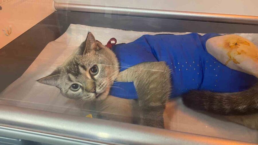 Karabük’te British cinsi sahipli bir kedi, oyun oynarken, evin penceresinden atlayarak kapının önünde duran 25 cm odun parçası karnından saplandı. Saplanan odun parçası kedinin karnından girerek arka ayağından çıktı. Kediyi kanlar içinde gören sahibi hemen veteriner kliniğe getirdi. Ancak veteriner kliniğinde yeterli teçhizat bulunmadığı için kedi Zonguldak’a sevk edildi. Kent merkezinde bulunan Zonguldak Veteriner Kliniğine getirilen kedi veteriner hekim Önder Alkan tarafından röntgen çekildi. Röntgeni çekilen kedi hemen ameliyatta alındı. İki saat süren ameliyat sonucunda kedinin karnına saplanan odun parçası ikiye bölünerek çıkarıldı. Sağlık durumunun iyiye gittiği öğrenilen kedi bir kaç gün içerisinde yoğun bakımdan çıkarılarak taburcu edilecek.