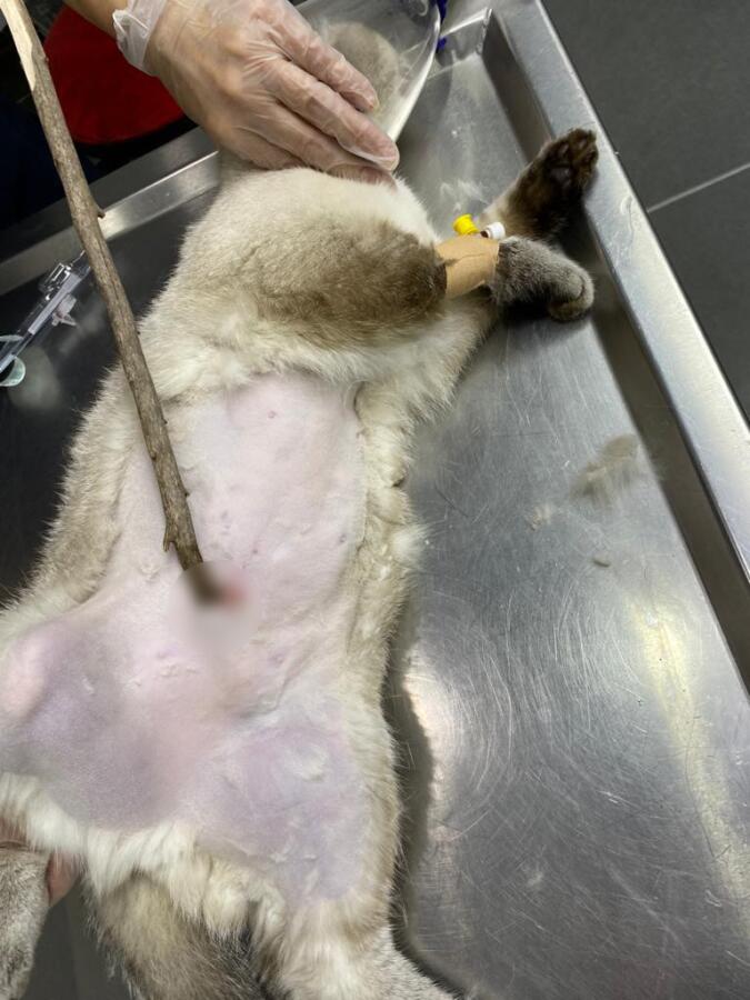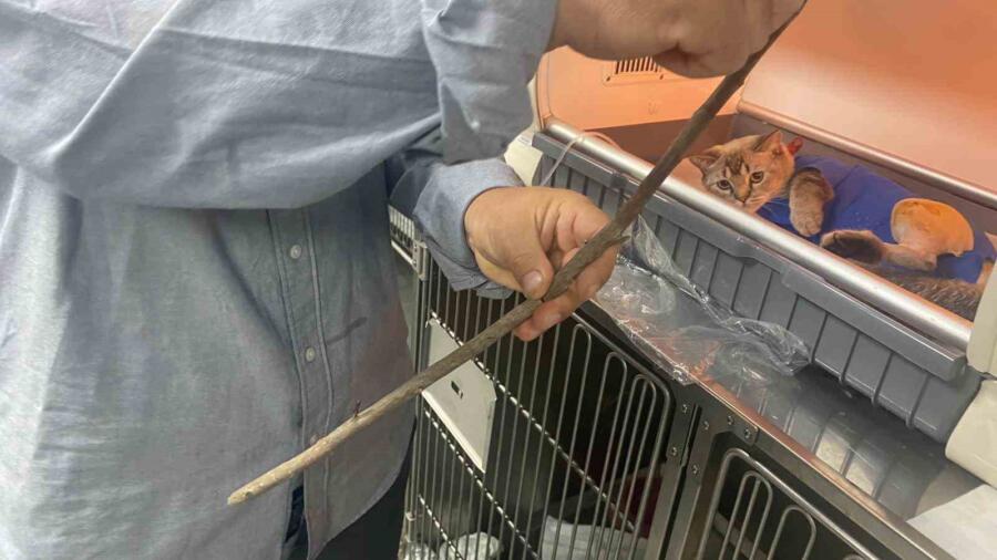 Zonguldak’ta karnına 25 santimetre uzunluğunda odun parçası saplanan British cinsi kedi, 2 saatlik operasyonla odun parçası karnından çıkarıldı.