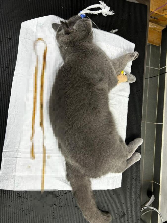Kdz.Ereğli’de oyun oynarken 1,5 metrelik kurdele yutan British cinsi Mırmır isimli kedi başarılı bir operasyonla midesindeki kurdele çıkartıldı.