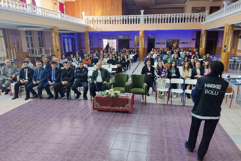 Mudurnu İlçe Emniyet Müdürlüğü Narkotik Suçlarla Mücadele Şube Müdürlüğü ekipleri tarafından tüm kamu kurum ve kuruluşlarında çalışan personele madde bağımlılığı farkındalık eğitimi verildi. Konferansta, narkotik madde kullanımı, kullanıcıların nasıl tespit edileceği, şüpheli durumların neler olduğu, kullanıcıların sosyal fiziksel ruhsal olarak nasıl etkilendiği, narkotik maddelerin tanıtımı vb. konularına değinildi.