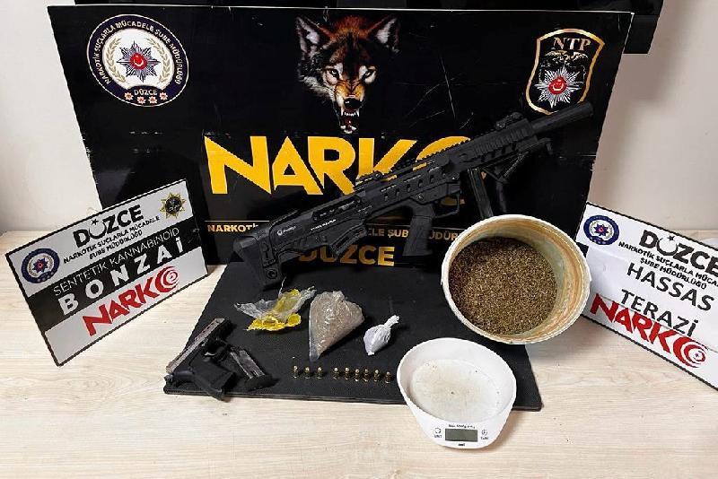 DÜZCE (İHA) – Düzce’de polis ekipleri tarafından yapılan şok uygulamada ruhsatsız tabanca, av tüfeği ve uyuşturucu madde ele geçirildi.
