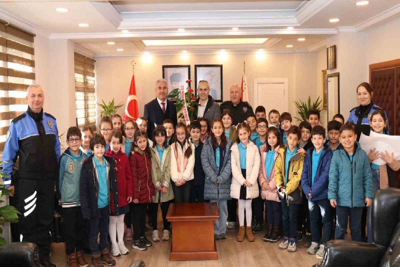 Düzce İl Emniyet Müdürü İbrahim Ergüder öğrencileri makamında misafir ederek, hediye takdim etti.