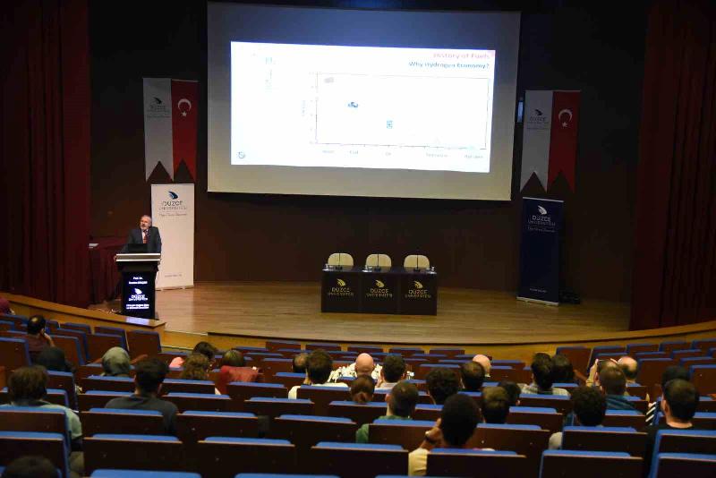 Düzce Üniversitesi Mühendislik Fakültesi tarafından düzenlenen, Hidrojen Çağına Giriş ve Bilimsel Öncelikler adlı program gerçekleştirildi. Cumhuriyet Konferans Salonu’nda ki programda konuşan Düzce Üniversitesi Rektörü Prof. Dr. Nedim Sözbir, “Hidrojen Çağına Giriş ve Bilimsel Öncelikler” adlı programı düzenlemekten mutluluk duyduklarını ifade etti. Prof. Dr. İbrahim Dinçer’in hidrojen konusunda dünya çapında bir akademisyen olduğunu söyleyen Sözbir, kendisinin çok değerli bilgiler paylaşacağını sözlerine ekledi.