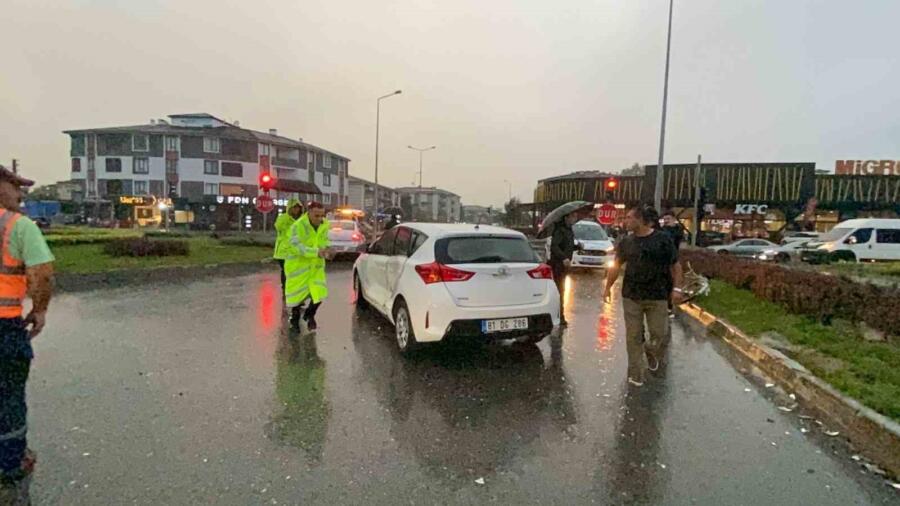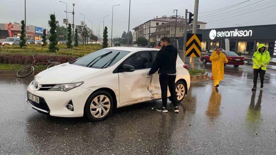 Kaza, akşam saatlerinde D-100 karayolu Olimpiyat Işıklı kavşakta meydana geldi. İstanbul istikametine gitmekte olan Ersoy D. idaresindeki 34 DT 0724 plakalı Opel marka otomobil ile Düzce şehir merkezinden karayolunun karşısına geçmeye çalışan İlker N. idaresindeki 81 DG 286 plakalı Toyota marka otomobil sağanak neticesinde çarpıştı. Kazada sürücü İlker N. ile otomobilde bulunan Mert D. ve Ercan Ö. yaralandı. Kazayı görenlerin haber vermesi üzerine olay yerine sağlık ve polis ekipleri geldi. Acil sağlık ekipleri yaralılara ilk müdahalelerini olay yerinde yaparak ambulanslar ile Düzce Üniversitesi Hastanesi ve Atatürk Devlet Hastanesine kaldırdı. Polis ekipleri kazayla ilgili inceleme başlattı.