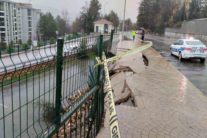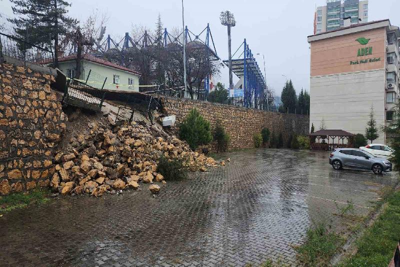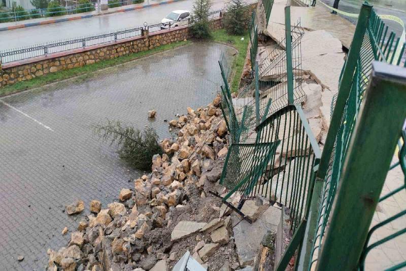 Dün akşam saatlerinden itibaren etkili olan sağanak yağmur ve şiddetli rüzgar Karabük’te hayatı olumsuz etkiledi. Ergenekon Mahallesi Gülgün Sokak’ta sağanak sonrası bu sabah bir sitenin istinat duvarının bir bölümü çöktü. Durumun bildirilmesi üzerine olay yerine polis ekipleri sevk edildi. Ekipler şerit çekerek çevrede güvenlik önlemi aldı.