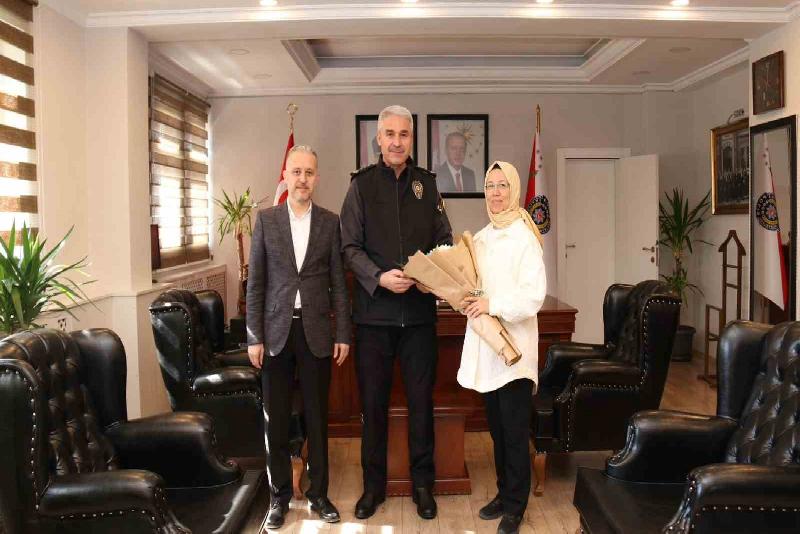Düzce İl Sağlık Müdürü Dr. Yasin Yılmaz ve sağlık yöneticileri, Türk Polis Teşkilatının kuruluşunun 179. yılı ve 8-14 Nisan Polis haftasında İl Emniyet Müdürü İbrahim Ergüder’i ziyaret etti. Düzce’deki polislerin yaptıkları çalışmaları için, teşkilata teşekkür eden sağlık çalışanları, tüm polis teşkilatı adına Ergüder’e çiçek takdim etti.