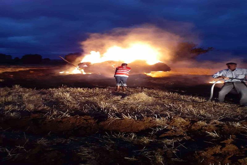 Yangında 150 saman balyası küle dönerken, römork kullanılmaz hale geldi.