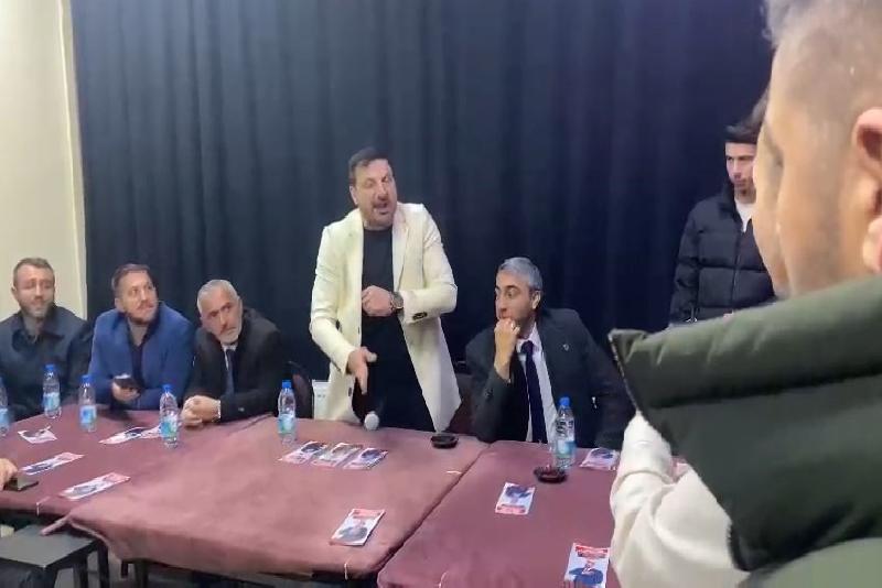 Vatandaşın, “Başkan elinde mikrofon var, bağırmana gerek yok. Biz seni duyabiliyoruz” söylemi üzerine Güloğlu, mikrofonu masaya atarak vatandaşa “Nerelisin?” diye sordu. Öfkelenen Davut Güloğlu’na vatandaş, “Ben buralıyım. Bana mı vuracaksın?” dedi. Güloğlu ise “Ben sana neden vurayım? Neden benim üzerime geliyorsun?” diye konuştu. Bu sırada salondakiler de araya girerek, Belediye Başkan Adayı Davut Güloğlu ve vatandaşı sakinleştirmeye çalıştı.