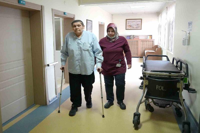 Sinop’ta 10 Haziran’da geçirdiği trafik kazasında yaralanan Dursun Pekmezci, omurilik zedelenmesi yaşayarak felç geçirdi. Yoğun bakım ünitesindeki tedavisinin ardından Kastamonu Fizik Tedavi ve Rehabilitasyon Hastanesine müracaat eden Pekmezci, ambulansla sedye üzerinde geldiği hastanede tedavi altına alındı. Dursun Pekmezci, 4 aylık bir tedavi sürecinin ardından bastonla yürümeye başladı. Robotik yürüme cihazının da desteğiyle gördüğü tedavi sürecinin tamamlanmasıyla yeniden yürümeye başlayan Dursun Pekmezci, taburcu edildi. Yatağa bağımlı halden kurtularak tekrar ayağa kalkan ve yürümeye başlayan Dursun Pekmezci, mutluluğunu gözyaşlarını tutamayarak anlattı.