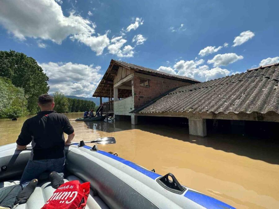 Düzce’de yaşanan selde 2 gündür mahsur kalan 100’e yakın manda ve ineğe botla ulaşılarak kurtarıldı.