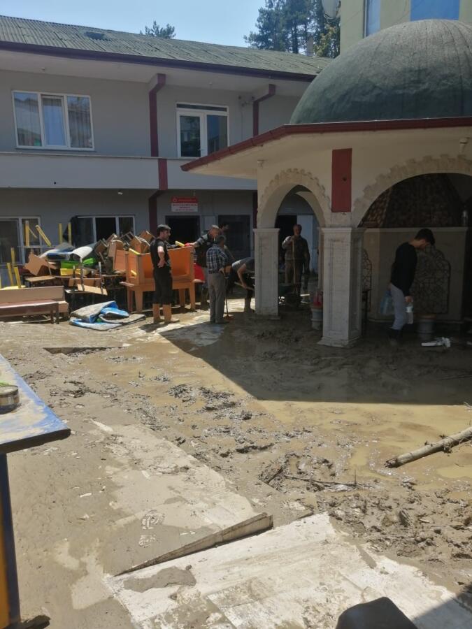 Sel sonrası elektrik kesintilerinin yaşandığı camide vakit namazını okuyan Eskişehir AFAD gönüllüsü Murat Özdemir, “Sel afetini duyunca direk okulumuzdaki işimizi bırakıp Bartın’daki selde kalan vatandaşlarımıza yardım için koştuk. Beycuma beldemizde kamu mallarını, iş yerlerini temizlerken camiyi de temizledik. Camide vakit ezanı geldiği için ezan okunmadığını hissettik. Orada ezan okumak istedim. Biz bu vatanın bayrağına, ezanına, Kur’an’ına sahip çıkan insanlarız. Biz bu vatanın gönüllü delileriyiz. Deprem bölgesinde de görev yaptık. Rabbim vatanımıza, devletimize zeval vermesin. Caminin diz boyuna kadar komple sel basmış. Halıları, rahlelerini sel almış. Onların temizliğini yaptık. İtfaiyemiz yıkamasını, bizler taşımasını yaptık. Vakit girince ezanı okuduk” diye konuştu.