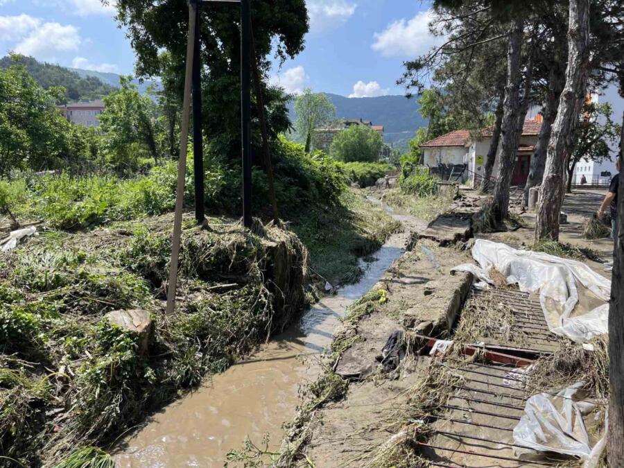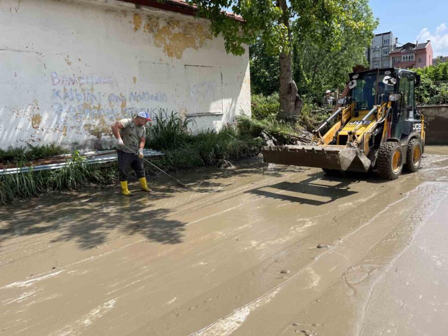 Suların çekilmesiyle birlikte ilçede selden etkilenen noktalarda temizlik çalışması başlatıldı.