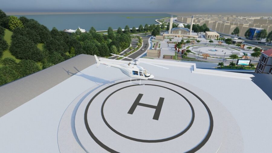 Kent Meydanı Projesi’nin en dikkat çeken kısmı Belediye Binasının üzerinde ki Heliport Pisti oldu. Öncelikle acil durumlarda kullanılmak için helikopter pisti yer alan projede Kaymakamlık binasının yanında olması sebebiyle halkın rahat ulaşabileceği bir alan da olmuş olacak. Aynı zamanda kamusal hizmetlere kolay erişim sağlanması amaçlanıyor.