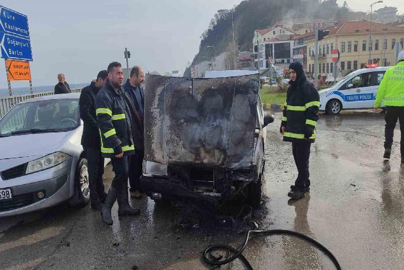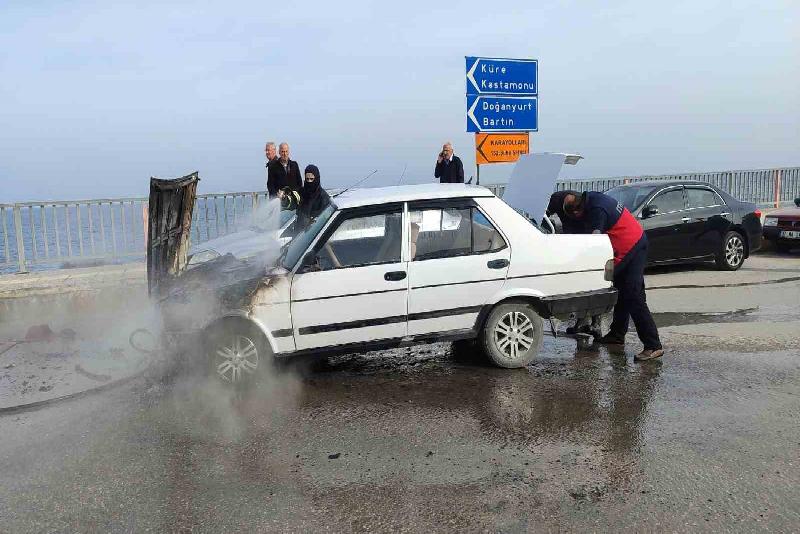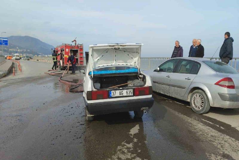 Kastamonu’nun İnebolu ilçesinde seyir halindeki Tofaş marka otomobilin motor kısmında çıkan yangın itfaiye ekipleri tarafından söndürüldü.