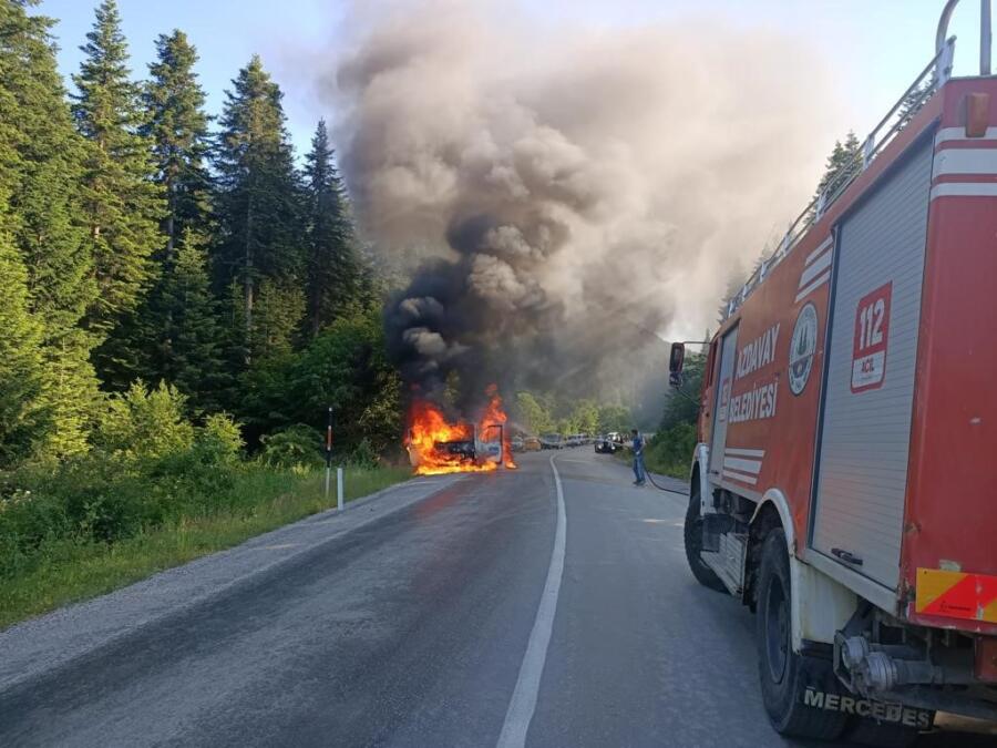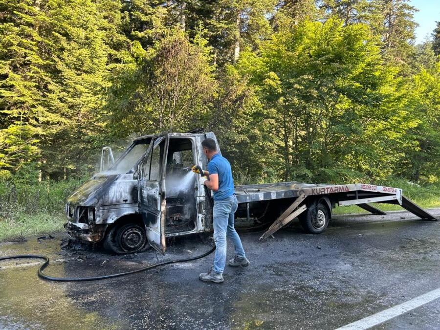 Olay, Kastamonu’da Azdavay-Pınarbaşı karayolu Karakuşlu köyü mevkiinde meydana geldi. Edinilen bilgiye göre, sürücüsü öğrenilemeyen 37 ABZ 603 plakalı oto kurtarıcı, seyir halinde iken bilinmeyen sebeple yanmaya başladı. Kısa sürede alev topuna dönen oto kurtarıcı, olay yerine çağrılan Azdavay İtfaiye ekipleri ile Azdavay Orman İşletme Müdürlüğüne ait arazözler ile söndürüldü.