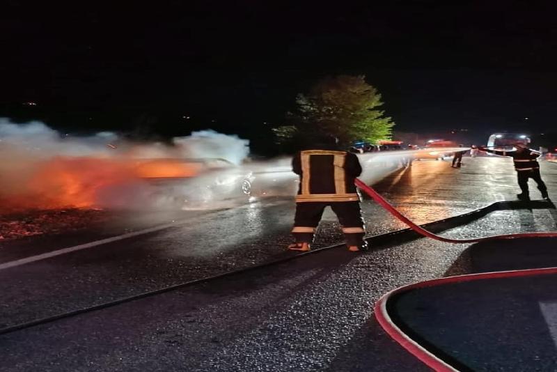 Kastamonu’nun Taşköprü ilçesinde seyir halindeyken alevlere teslim olan otomobil kullanılmaz hale geldi.
