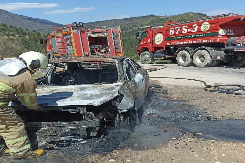 Karabük’ün Safranbolu ilçesinde seyir halindeki otomobil yanarak kullanılmaz hale geldi.