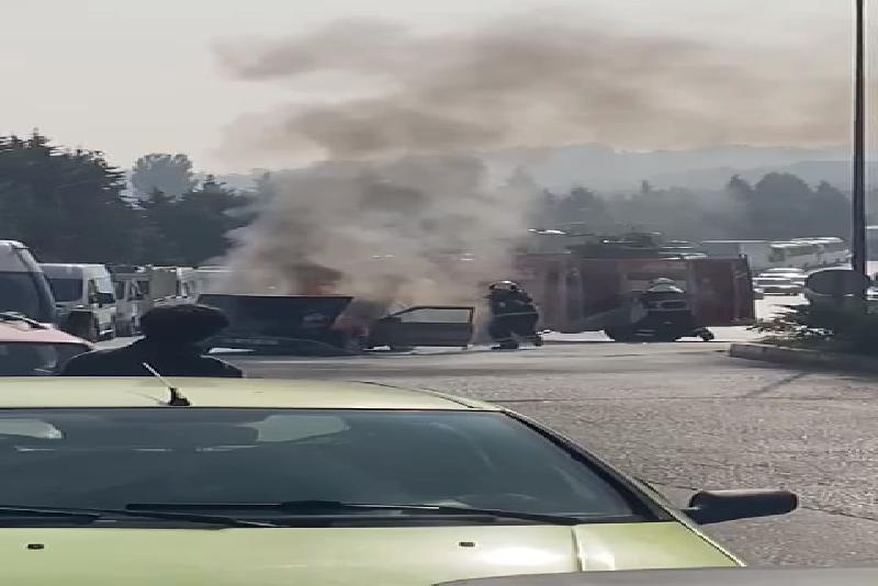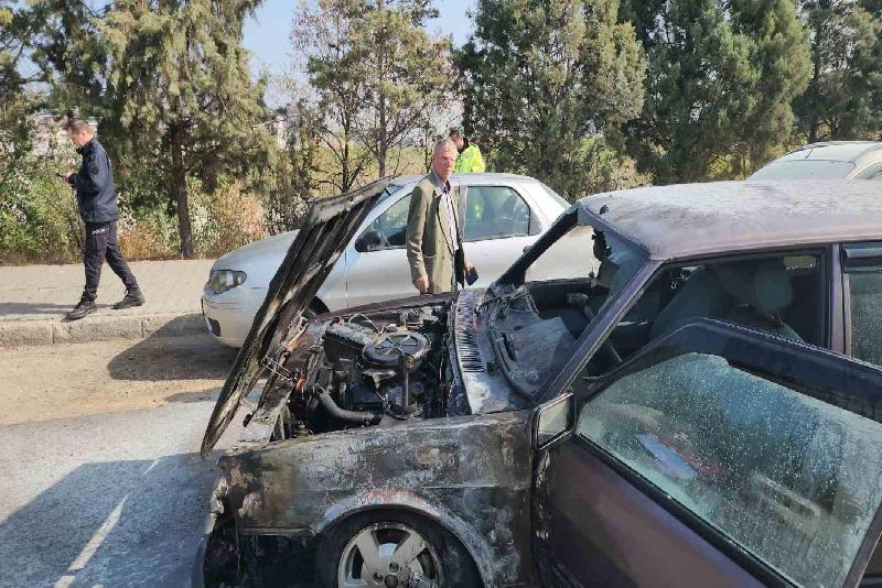 Olay, Karabükköyü Mahallesi Ahmet Haşim Caddesi üzerinde meydana geldi. Karabük istikametine seyir halinde olan Sadık Ataşcan (65) idaresindeki 78 AAE 001 plakalı Tofaş marka otomobilin motor kısmından bir anda dumanlar yükselmeye başladı. Aracını yol ortasında durdurarak aşağıya inen sürücü Ataşcan, önce su bidonu, ardından ise bezle alevlere müdahale etmeye çalıştı. Buna rağmen bir anda alevlenen otomobile yoldan geçen diğer sürücülerin yangın tüpleri ile müdahalesi de yetersiz kaldı. İhbar üzerine olay yerine gelen Karabük Belediyesi itfaiye ekiplerinin müdahalesi ile otomobil demir yığınına dönmekten son anda kurtarılırken, büyük çapta maddi hasar oluştu.