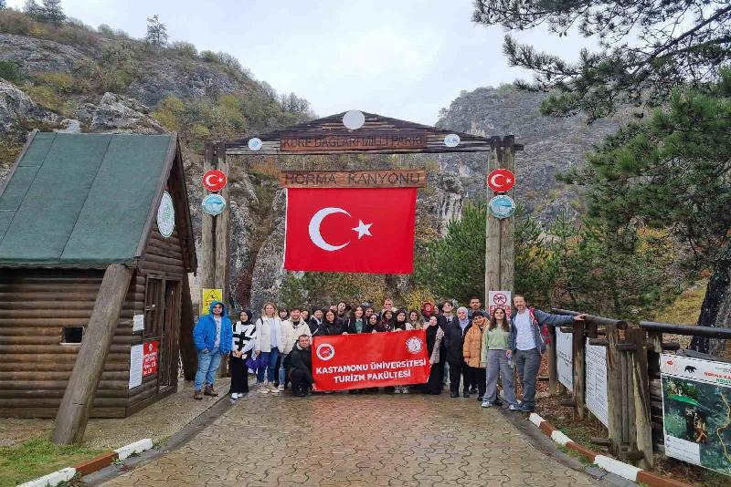 Kastamonu Üniversitesi Turizm Fakültesi Turizm Rehberliği Bölümü öğrencileri, Kastamonu Üniversitesi Turizm Fakültesi Öğretim Görevlisi Hikmet Haberal’ın koordinatörlüğünde düzenlenen gezi ile Pınarbaşı’ndaki Horma Kanyonunu gezdi. Horma Kanyonunda 3 kilometrelik yürüyüş parkurundan Ilıca Şelalesine kadar yürüyen öğrencilere, bölgenin biyo-çeşitlilik anlatıldı. Gezi çerçevesinde öğrenciler, Azdavay ilçesi Suğla Yaylasındaki Atlı Turizm Merkezi ile Çatak Kanyonu üzerinde bulunan 450 metre yükseklikteki cam terası, UNESCO tarafından Dünya Miras Listesine alınan Mahmutbey Camiini, cami çevresinde bulunan mezarlar ile hamamları ve Köpekçioğlu Konağını da ziyaret etti.