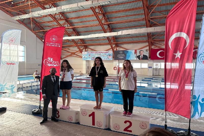 DÜZCE(İHA) – Düzce’de okul sporları gençler ve yıldızlar yüzme müsabakalarında 80 sporcu derece yapabilmek için kulaç attı.