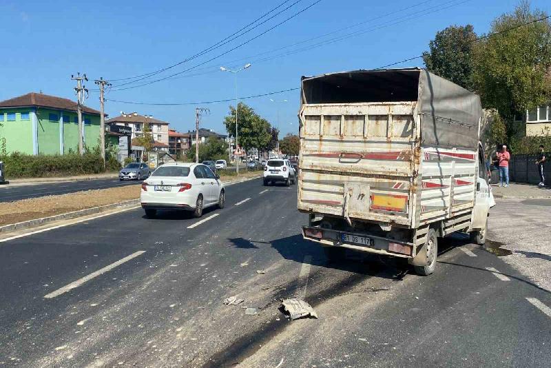 Düzce’de sürücü kursu adayının kullandığı otomobile kamyon çarptı. Kazada 3 kişi yaralandı.