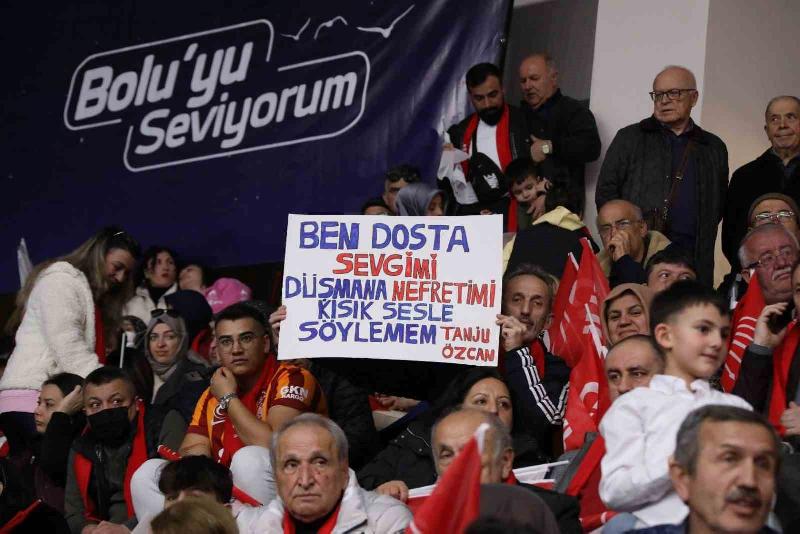 Tanju Özcan, kent mobilyaları üretim tesisi, Atatürk Kültür Merkezi, Bolu fuar alanı, Ankara’ya Bolu konuk evi, ekolojik köy, spor kompleksi, Borazanlar Deresi, 100. Yıl Cumhuriyet Parkı, karavan parkı, terminal çevresinde eğlen-dinlen alanı, D-100’e kavşaklar, otobandan 3’üncü çıkış, bilim merkezi, gündüz bakım evi ve kreş, gençlik merkezi, kapalı spor salonu, Bolu Gastronomi Adası, Atatürk Lisesi ve çevre düzenlemesi, Katırcılar Hanı restorasyonu başlıklarıyla yeni dönemde yapacağı projeleri açıkladı. Başkan Özcan’ın sunumunun ardından CHP ilçe belediye başkan adayları, İl Genel Meclisi ve Belediye Meclisi adayları tanıtıldı.