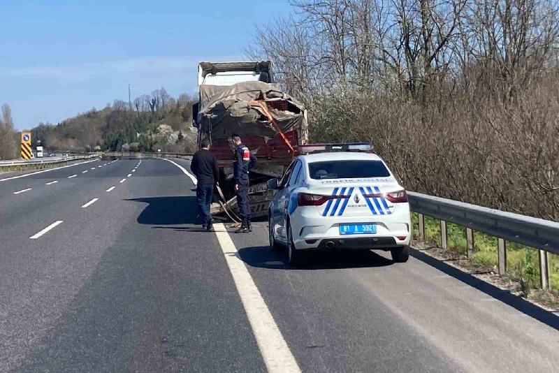 Kaza sebebi ile tek şeritten verilen yol tankerin kaldırılmasının ardından normal seyrine döndü.
