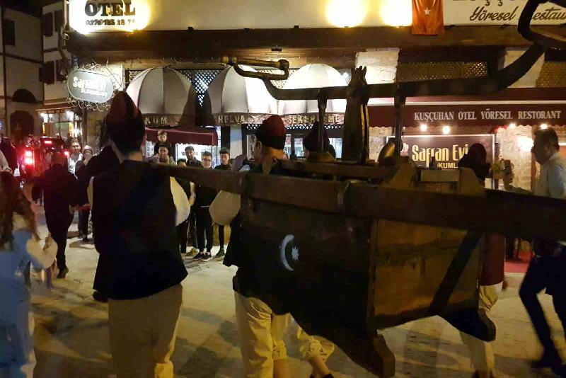 Safranbolu Belediyesi İtfaiye Müdürlüğü ekipleri Ramazan etkinlikleri çerçevesinde 303 yıl önceki tulumbacıların kıyafetlerini giydi. Kazdağlı mevkiinden itibaren yangın söndürme tulumbasını sırtlayan tulumbacılar, Tarihi Çarşı sokaklarını gezdi. Attıkları naralarla vatandaşların büyük ilgisini çeken tulumbacılara Safranbolu Belediye Başkanı Elif Köse de eşlik etti. Program Han arkasında sona erdi.