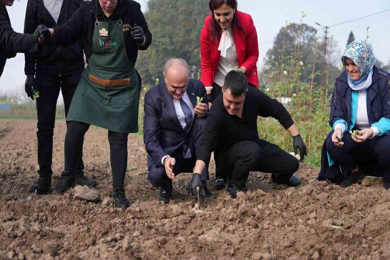 Başkan Özlü, daha sonra Kusursuz Kafe personelleriyle birlikte marul dikimi gerçekleştirdi.