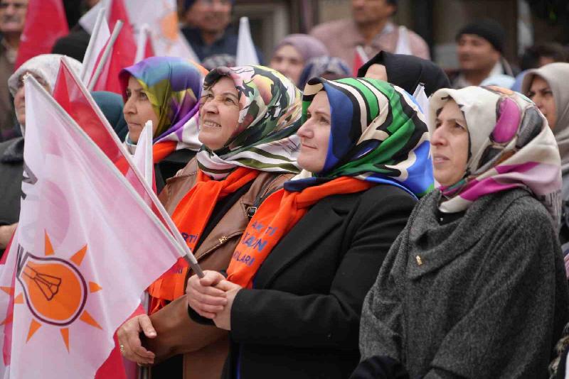 İstanbul Büyükşehir Belediye Başkan Adayı Murat Kurum için de destek isteyen Bakan Yumaklı, “İstanbul bir dünya şehriydi, beş senede ne hale getirdiler? Bunu görüyorsunuz. Hepimizin İstanbul’da eşi, dostu, tanıdığı, akrabası var. Şimdi ben sizden üç tane söz isteyeceğim. Sizin buradan vereceğiniz ses ta İstanbul’a kadar gitsin, Kastamonu’ya kadar gitsin. Ama önce 31 Mart’ta hizmet etme görevini ve şerefini, yani o mührü Kazım Başkanımıza vermek için söz veriyor muyuz? Ikincisi İstanbul’daki eşimizi, dostumuzu aramamız lazım. Ben oradaki bütün kardeşlerimizle bir araya geldim, onlara bunun ne kadar önemli olduğunu anlattım. Sizler de bana İstanbul’daki nazımız geçen kimler varsa onlara 31 Mart’ta Murat Kurum için oy vermelerini, ona o görevi vermelerini söylemek için aramaya söz veriyor musunuz? Üçüncüsü de benim en büyük gücüm, baba toprağından bana yapılan dua edilmesi. Benim için de sadece dua edin, yeter” ifadelerini kullandı.