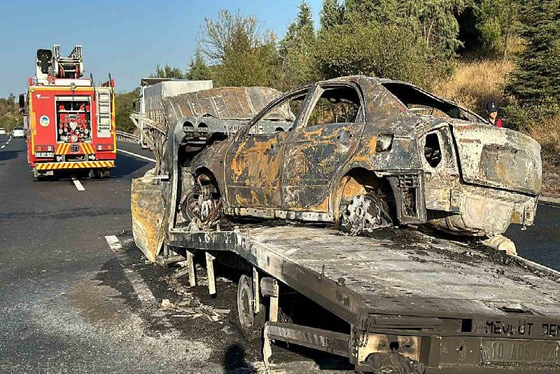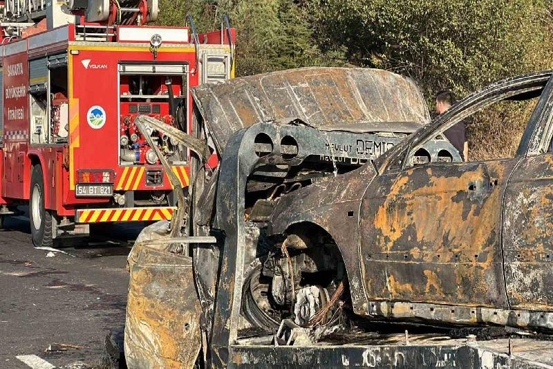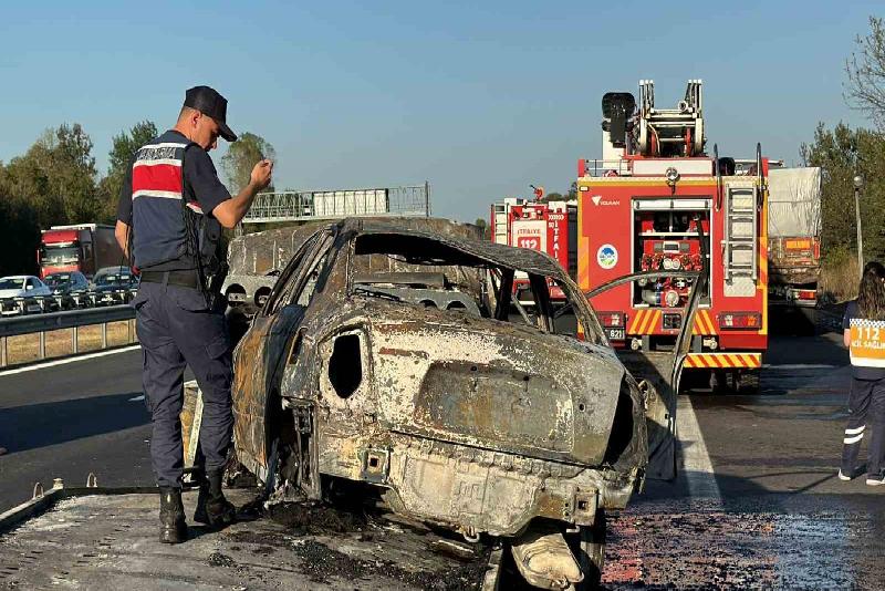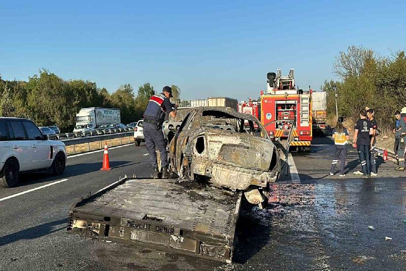 DÜZCE (İHA) – TEM Otoyolu Düzce geçişinde otomobil yüklü çekici, tıra çarpıp alev aldı. Kazada 1 kişi yanarak hayatını kaybetti, 2 kişi ise ağır yaralandı.
