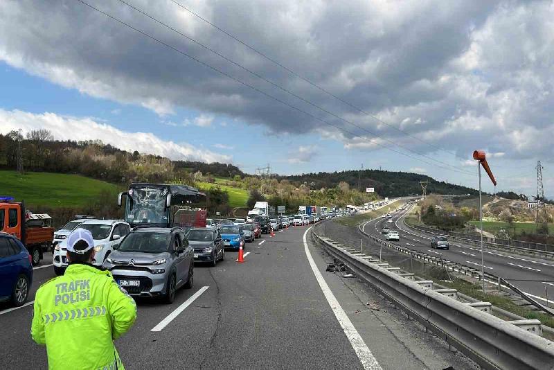 Kaza nedeniyle bölgede trafik bir süre iki şeritten sağlandı.
