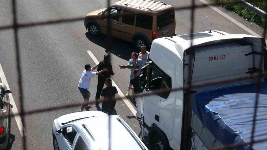 Olay, TEM Otoyolu’nun Bolu geçişinde Çaydurt mevkiinde meydana geldi. İddiaya göre, Kurban Bayramı trafiği nedeniyle yavaş akan trafikte sağ şeridi kullanan tır sürücüsü, Çaydurt mevkiinde emniyet şeridini kullanarak hatalı sollamalarla ilerleyen ve daha sonra kendisinin önüne atlayan sürücüyle tartıştı. Kısa süre araç içinden birbiri ile atışan 2 sürücü daha sonrasında araçlardan inerek yumruk yumruğa kavga etti. Yaşanan kavga anları anbean kameraya kaydedildi. Yaşanan kavgayı çevredekiler ve polis ekipleri ayırdı.