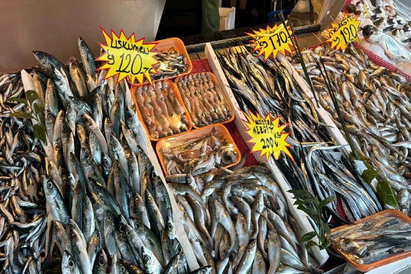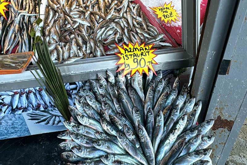 Tezgahlarda hamsi 100, uskumru 120, levrek 130, somon 200, çupra 130, mezgit 120, zargana 170 liradan satılırken, azman istavrit ise 90 liradan satışa konuldu.
