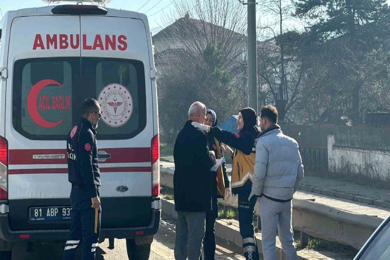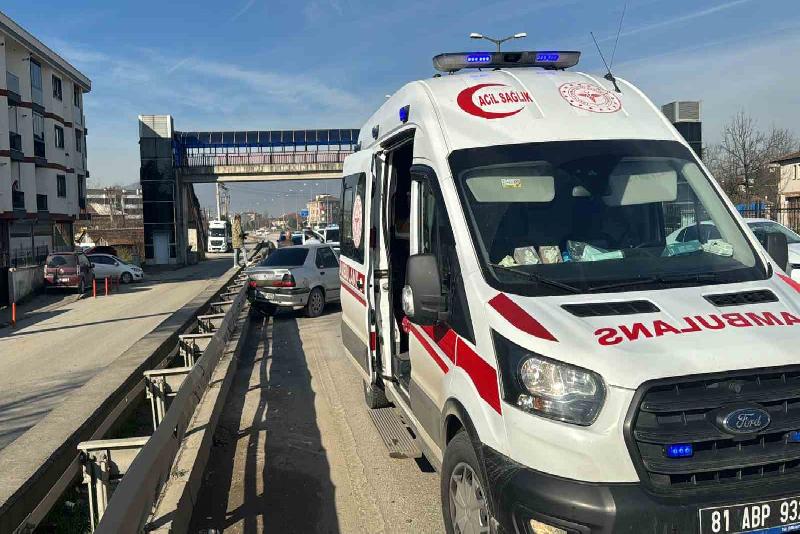 Kaza D-100 karayolu Kervan Kavşağı mevkiinde meydana geldi. Alınan bilgilere göre Çoban istikametinden Kervan istikametine seyir halinde olan H.Ç. idaresindeki 81 ABR 025 plakalı otomobil ile aynı güzergahta ki S.Y. idaresindeki 14 EG 553 plakalı Scania marka tır çarpıştı. Çarpışmanın etkisiyle otomobil bariyerlere çarpıp savruldu. İhbar üzerine bölgeye gelen sağlık ekipleri otomobil sürücüsü H.Ç. ve yanında yolcu olarak bulunan E.Ç.’ye ilk müdahaleyi yapmasının ardından hastaneye kaldırdı.