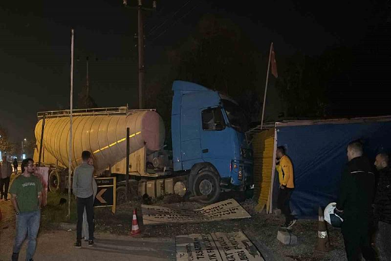 Düzce’de sürücüsünün direksiyon hakimiyetini kaybettiği tır otomobile çarpıp karşı şeride geçti. Tır, yol kenarında dükkana çarparak durabildi.