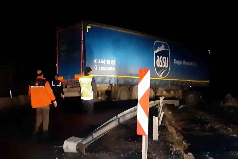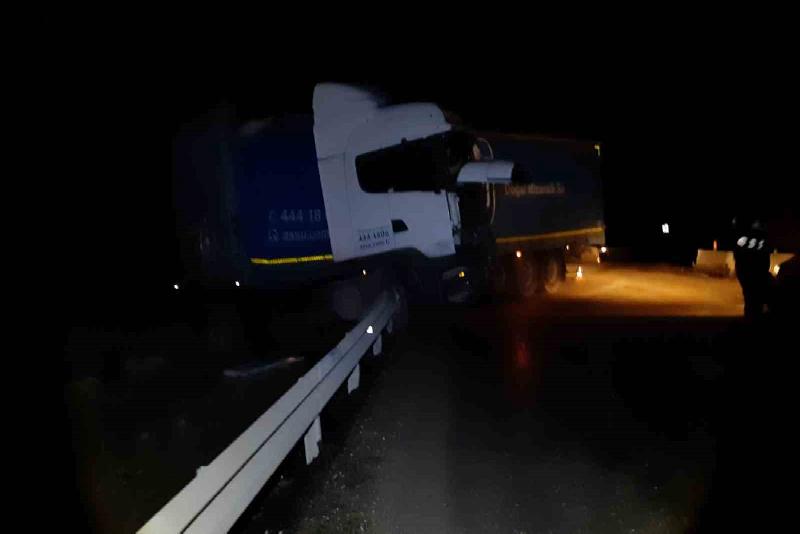 Bolu’nun Mudurnu ilçesinde kontrolden çıkan tır makaslayarak bariyerlere çarptı, kazada sürücü yaralandı.