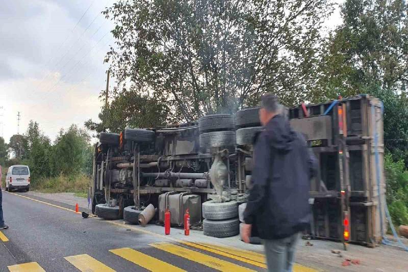 Kaza, Bolu Dağı Darıyeri Hasanbey köyü mevkiinde meydana geldi. Alınan bilgilere göre, Bolu’dan Düzce istikametine seyir halinde olan Hakan B. idaresindeki 20 AAY 075 plakalı tomruk yüklü kamyon, sürücüsünün direksiyon hakimiyetini kaybederek yol kenarına devrilip sürüklendi. Sürüklenen kamyondan yola saçılan tomruklar sebebi ile yol kısmen trafiğe kapandı. Kaza sebebi ile kamyonda alevler yükselmeye başlayınca bölgede bulunan vatandaşlar yangın söndürme tüpleri ile alevleri söndürdü. Yola saçılan tomruklar sebebi ile yol kısmen trafiğe kapandı. Bölgeye gelen polis ekipleri kendi imkanları ile tomrukları yoldan kaldırıp trafiği tek şeritten açarken, kaza da tır sürücüsü Hakan B. yaralanarak hastaneye kaldırıldı. Kaza ile ilgili polis ekipleri inceleme başlattı.
