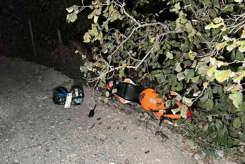 Düzce’de yol kenarındaki trafik tabelasına çarpan motosiklet fındık bahçesine uçtu. Kazada 1 kişi yaralandı.