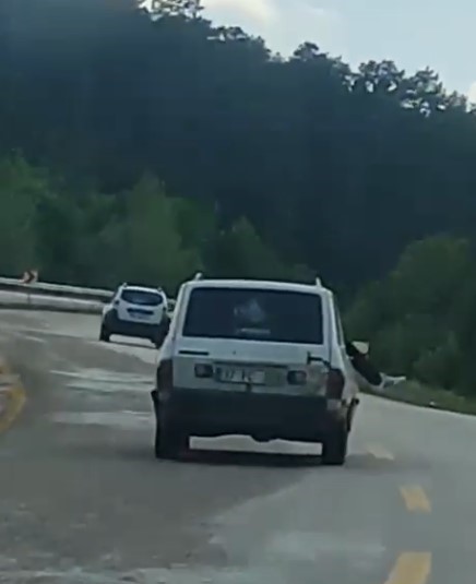 Kastamonu’da ayaklarını otomobilin camından sarkıtan vatandaş ölüme davetiye çıkarttı. O anlar vatandaşlar tarafından görüntülendi.