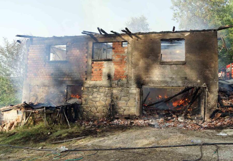 İki katlı evin tamamen yandığını söyleyen Bayram, “Önce yangın evin altında bulunan traktörden dolayı tutuştu. Burası iki katlı ev oluyor, iki aile oturuyor. Ben geldiğimde evin altındaki garaj ve traktör yanıyordu. Sonra alevler tüm evi sardı” diye konuştu.