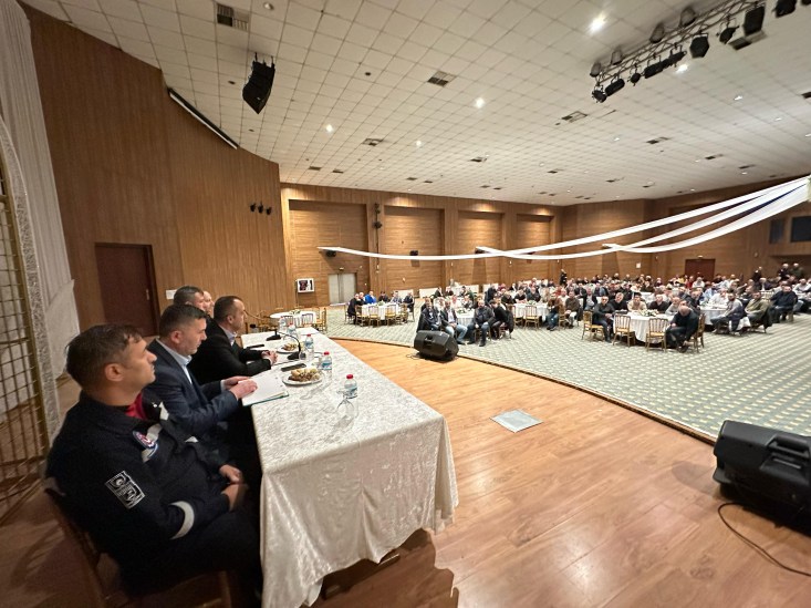 Türk Metal Sendikası Kdz.Ereğli Şube Başkanı Altan Kalfa; toplantıda bir konuşma yaparak; sendikal kazanımlar ve ileriki süreçler hakkında üyeleri bilgilendirdi.