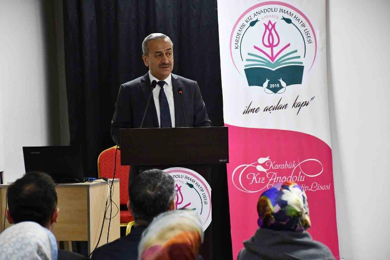 Kardemir Kız Anadolu İmam Hatip Lisesinde düzenlenen çalıştay saygı duruşu ve İstiklal Marşı’nın okunmasıyla başladı.