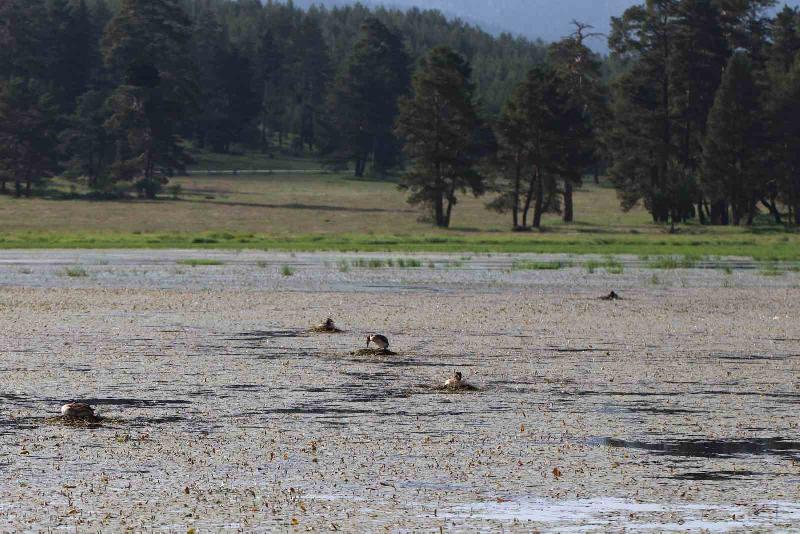 Orman Fakültesi’nde görevli flora uzmanlarının yeni bir lokalitesini keşfettiği bu bitki türü Elodea nuttallii (Planch.) H.St.John (Hydrocharitaceae), (Nuttal Suotu) olarak adlandırılıyor. Kuzey Amerika’ya özgü olan bu tür, günümüzde birçok Avrupa ülkesi ile Kırım, Çin, Japonya ve Filipinler’e kadar girmiş bulunuyor. Bolu Göksu Tabiat Parkı’nda Elodea nuttallii ve Elodetum canadensis türlerinin baskın olarak yer aldığı Elodea canadensis toplumu, yabancı bitki toplumu olarak tespit edildi. Özellikle kıyaya yakın yerlerde yarı batık durumlu bu bitki toplumu baskın durumda yer alıyor. Yapılan araştırmalar sonucunda söz konusu bitki türünün birçok ülke florası için istilacı bir tür olduğu, özelikle de yüksek rekabet yeteneği ile girdiği ekosistemlerde kısa sürede doğal bitki örtüsünün yerini alma potansiyeli bulunduğu görüldü. Göksu Tabiat Parkı, Bahri Kuşu’nun (Podiceps cristatus) göç yolu üzerinde bulunuyor. Kuş özellikle çiftleşme ve yumurtlama dönemlerini Göksu Tabiat Parkı içerisinde bulunan Aladağ Göleti’nde geçiriyor. Kuşun alanda doğal olarak yayılış yapan Lemno-Potametum (Lemna minor – Potamogeton natans) bitki toplumu üzerinde yuvalandığı ve üreme danslarını yaptığı gözlendi. Bahri Kuşu’nun (Podiceps cristatus) üremesinde ve burada konaklamasındaki rolünden dolayı, gölün doğal bitki örtüsünün hassas olarak korunması gerekiyor. Alanda doğal bitki örtüsünün yerini alma potansiyeli bulunan yabancı bitki toplumunun yoğunluğunun izlenmesi ve risk yönetimi eylem planının hazırlanması gerekiyor.