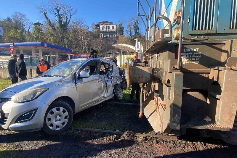 Zonguldak’ta içinde üç kişilik ailenin bulunduğu otomobil trenin çarpması sonucu 30 metre sürüklendi. Aile kazayı hafif yaralı şekilde atlattı.