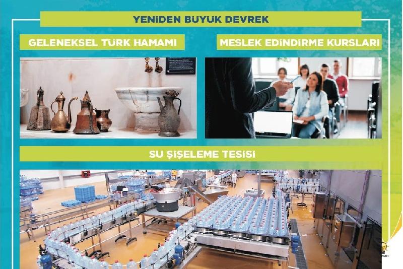 “İnsanın en temel ihtiyaçlarından olan barınma ihtiyacına yönelik çalışmalarının müjdesini veriyoruz. “Devrek’te ev sahibi olmayan kimse kalmasın” diyerek çıktığı bu yolda, 3 etap toplu konut projemizi hayata geçireceğiz. Devrek Belediyesi öncülüğünde, gelecek nesillere yaşanabilir bir çevre mirası bırakmak adına büyük öneme sahip geri dönüşüm kültürünün kent genelinde yaygınlaşması amacıyla ’’Geri Dönüşüm Seferberliği’’ projesi başlatıyoruz ve geri dönüşüm tesisi kuruyoruz. Hem daha temiz bir çevreye sahip olacağız hem de istihdam sağlamış olacağız. Vatandaşlarımızın en çok talep ettiği ve bölgemizin de ihtiyaç duyduğu şeylerden biri de hamamdı. İlçemizin ruhuna uygun mimarisiyle, Türk hamamı projemizi gerçekleştireceğiz ve saunasıyla birlikte ilçemizde hizmet vermeye başlayacak. Özellikle kadınlarımıza yönelik meslek edindirme kursları açacağız. Sektör ihtiyacına yönelik nitelikli eleman yetiştirmek amacıyla mesleki ve sanatsal eğitimlerin düzenlendiği tasarım ve üretim atölyelerinin sonunda kursiyerlerimize Milli Eğitim Bakanlığı onaylı sertifika verilecektir. Bölgemizin suyunu değerlendirip şişeleme tesisi kuracağız. Bu tesis ile hem istihdam oluşturmak bölgemizin ekonomisine katkı sağlamış olacağız. Ayrıca turizmin canlanmasına yöresel su kaynakları ve tesislerinin çok büyük faydası vardır. Devrek’imizin turizminin gelişmesine büyük önemli katkılar sağlayacak olan Camping ve Glamping alanları oluşturarak doğal güzelliklerinde korunmasını amaçlıyoruz. Devrek’imize gelen misafirlerimize doğa ile iç içe bir deneyim yaşatarak, ilçe ekonomimize de katkı sağlayacağız. Sürdürülebilir turizmi ilçemizde hayata geçireceğiz. Kadınlarımızın sosyalleşmesi ve yeni hobiler edinmesi için kadın yaşam merkezlerini kuruyoruz. Kadınlarımız için kurs atölyeleri, Aynı zamanda bir araya geldiklerinde vakit geçirmeleri için belediye gün merkezi oluşturacağız. Kadınlarımız burada hem sosyalleşip hem de öğrenirken çocuklarını belediye kreşimize bırakabilecek.”