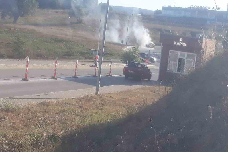Bolu Abant İzzet Baysal Üniversite’si kampüsünün B kapısı girişinde bir otomobil alev alev yandı.