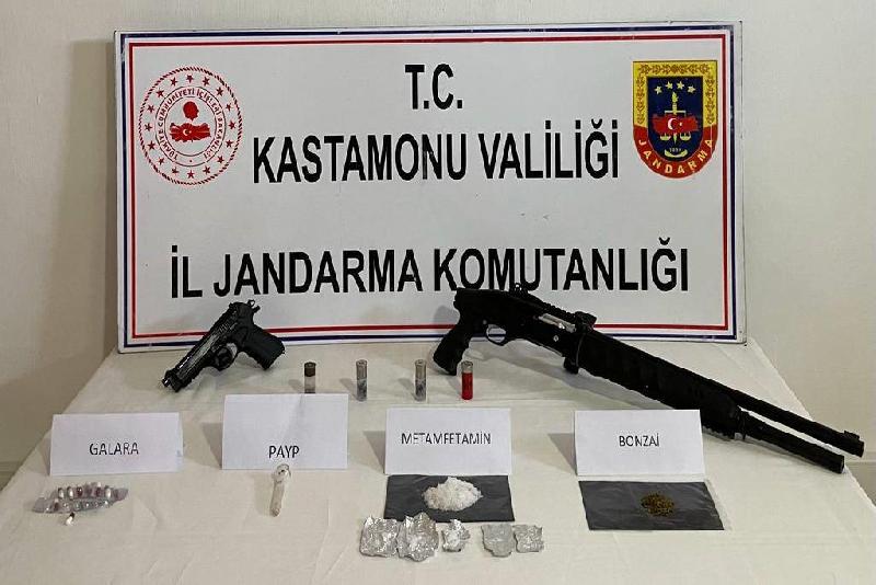 Edinilen bilgiye göre, Kastamonu İl Jandarma Komutanlığı ekiplerince uyuşturucu madde imal ve ticaretinin önlenmesine yönelik yapılan çalışmalar neticesinde, Tosya ilçesinde F.K. ve M.K. isimli şahısların içinde bulunduğu araçta arama yapıldı. Yapılan aramada extacy ve sentetik ecza hapı ele geçirildi. Merkez ilçesinde de S.T., S.Z. ve M.G. isimli şahısların içerisinde bulunduğu araç ve M.G.’nin evinde arama yapıldı. Yapılan aramada metamfetamin, kannabinoid, galara ve ruhsatsız av tüfeği ele geçirildi.