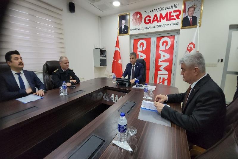 Yeni yıl öncesi kentin çeşitli bölgelerindeki kontrol noktalarını ziyaret eden Karabük Valisi Mustafa Yavuz, ilk olarak İl Emniyet Müdürlüğü Bölge Trafik Denetleme Şube Müdürlüğü personeli ile bir araya geldi. Yavuz, personele görevinde başarılar dileyerek, yeni yıllarını kutladı. Daha sonra Karabük Belediyesi İtfaiye Müdürlüğünü ziyaret eden Yavuz’u Belediye Başkanı Rafet Vergili karşıladı. Karabük Belediyesi İtfaiye Müdürü Koray Korkut çalışmalar ile ilgili bilgi verirken, Vali Yavuz ve Başkan Vergili itfaiye erlerinin yeni yılını kutladı. Yavuz, daha sonra sırasıyla İl Jandarma Komutanlığı ve Merkez İlçe Jandarma Karakol Komutanlığına, Safranpark jandarma uygulama noktasına, 5000 Evler Şehit Mehmet Esen Polis Merkezine ve 112 Acil Çağrı Merkezi Müdürlüğüne ziyarette bulundu. Buradaki personelin de yeni yılını kutlayan Yavuz, 112 Acil Çağrı Merkezi Müdürlüğünde yaptığı açıklamada yeni yılın tüm insanlığa sağlık, huzur ve mutluluk getirmesini diledi. Yavuz, 2023’ün afetler ve savaşlar nedeniyle hafızalarda acılarla dolu bir yıl olarak kalacağını ifade ederek, bu gece vatandaşların huzur ve güvenliği için emniyet teşkilatında 249, jandarma teşkilatında da 408 olmak üzere toplam 657 personelle sahada olacaklarını söyledi.